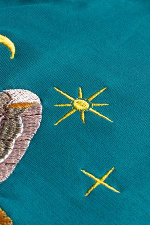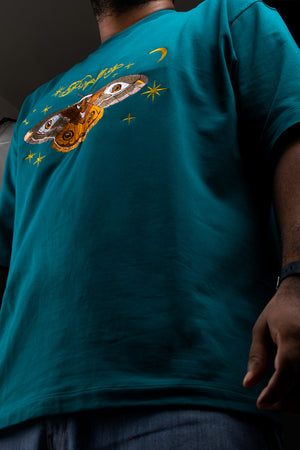 Wearing this shirt is like carrying a piece of the cosmos with you—a reminder that even in the darkest nights, something beautiful is always near, waiting to guide you home. The embroidered wings are a testament to that magic, woven into the fabric as if plucked from the night itself.