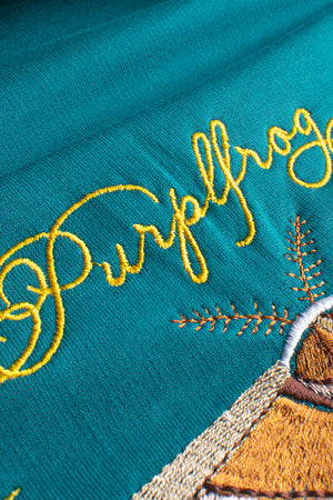 PurplFrog's puff print designs feature playful graphics, vibrant colors, and expressive motifs, adding a touch of fun and whimsy to any outfit.
