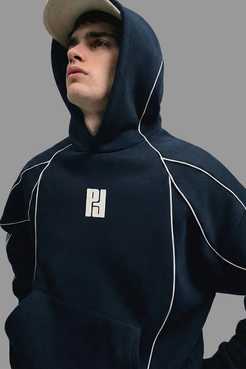 The NORD Hoodie is crafted from 400 GSM cotton fleece, delivering a dense, heavyweight feel that holds its shape while staying soft on the skin. Designed with sharp contrast piping, it adds a refined edge to a classic street silhouette—subtle, intentional, and elevated.