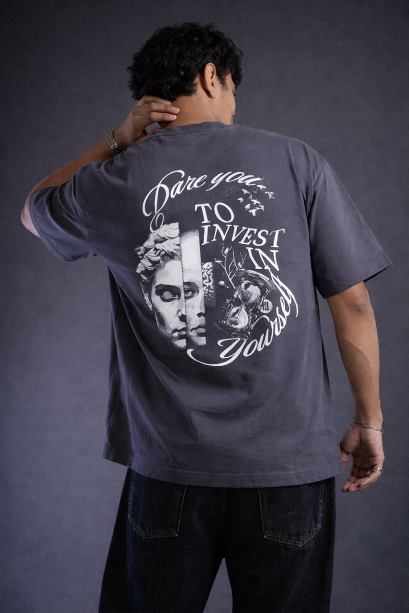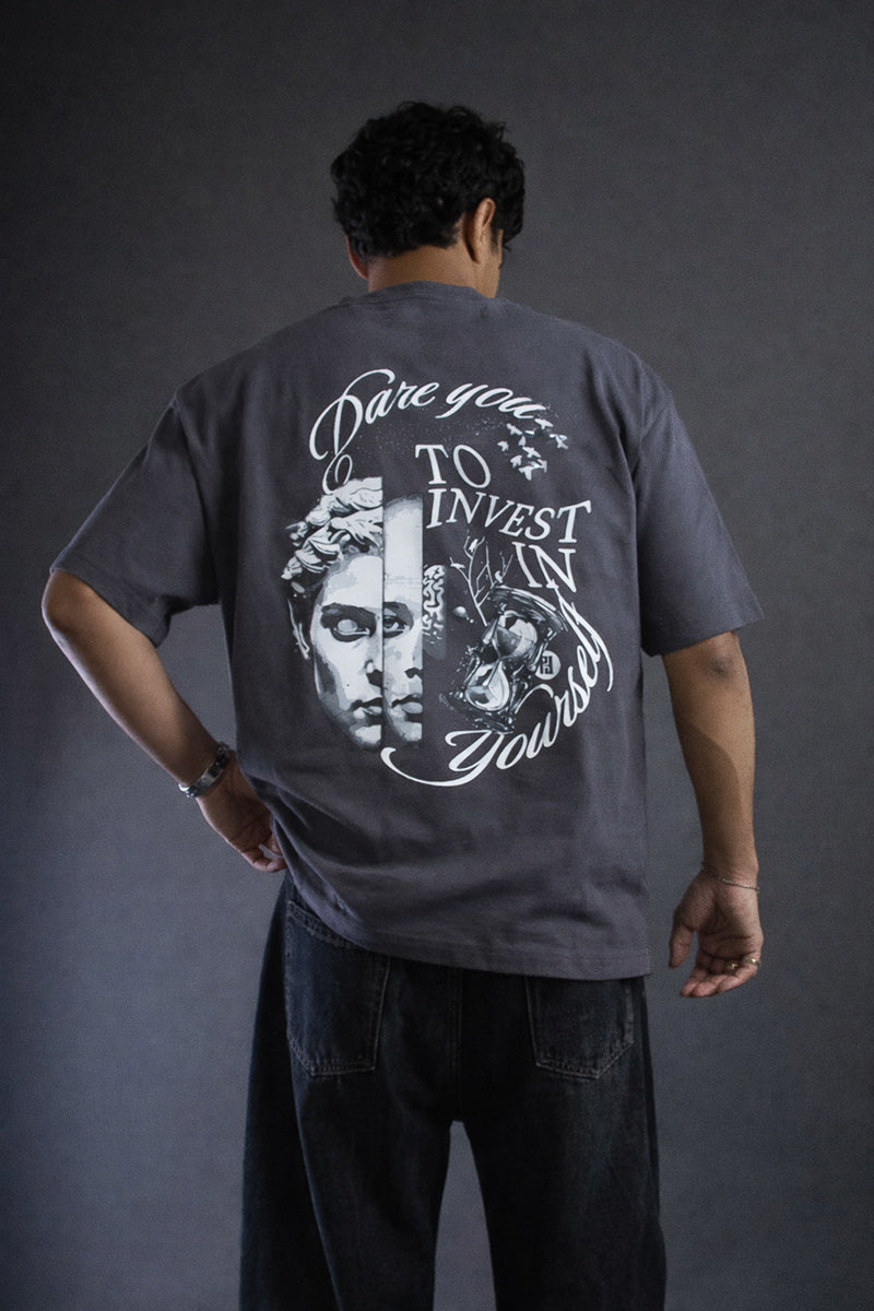 Dare to level up with this bold statement tee that's all about self-belief. Crafted from 100% cotton for ultimate comfort, this oversized fit gives you that effortlessly cool vibe while the eye-catching puff print makes your message impossible to miss. Whether you're crushing goals or just reminding yourself that you're worth the investment, wear it loud and proud. Because the best investment you'll ever make? That's you.
