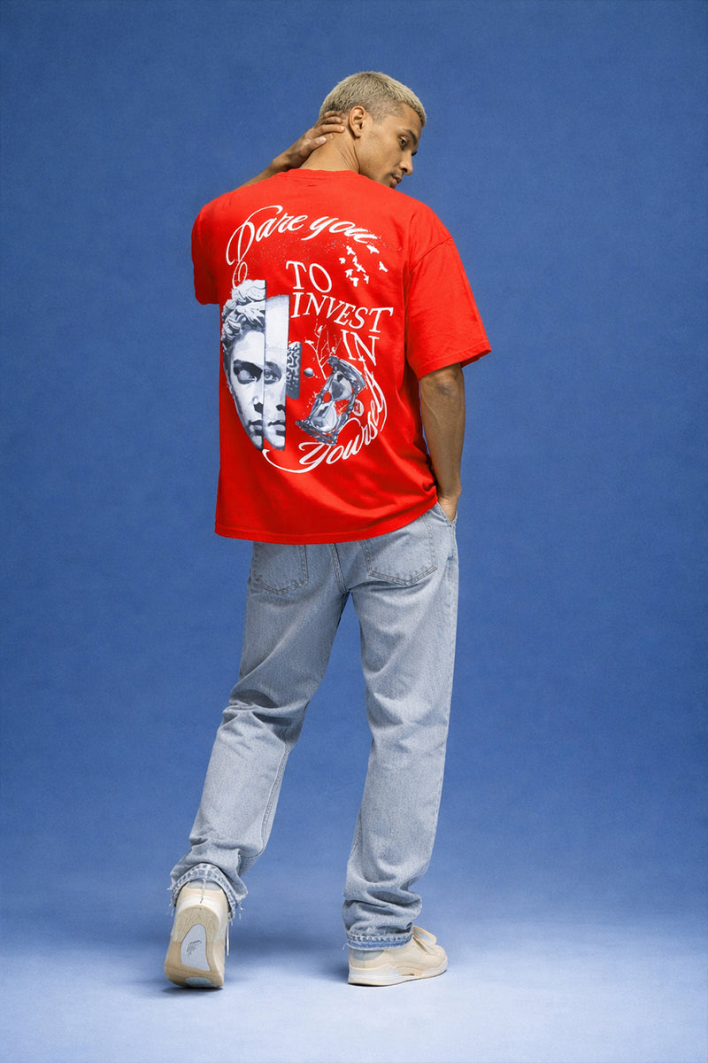 Dare to level up with this bold statement tee that's all about self-belief. Crafted from 100% cotton for ultimate comfort, this oversized fit gives you that effortlessly cool vibe while the eye-catching puff print makes your message impossible to miss. Whether you're crushing goals or just reminding yourself that you're worth the investment, wear it loud and proud. Because the best investment you'll ever make? That's you.