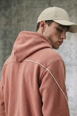 The NORD Hoodie is crafted from 400 GSM cotton fleece, delivering a dense, heavyweight feel that holds its shape while staying soft on the skin. Designed with sharp contrast piping, it adds a refined edge to a classic street silhouette—subtle, intentional, and elevated.