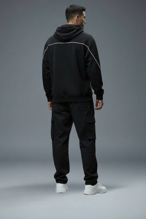 The NORD Hoodie is crafted from 400 GSM cotton fleece, delivering a dense, heavyweight feel that holds its shape while staying soft on the skin. Designed with sharp contrast piping, it adds a refined edge to a classic street silhouette—subtle, intentional, and elevated.